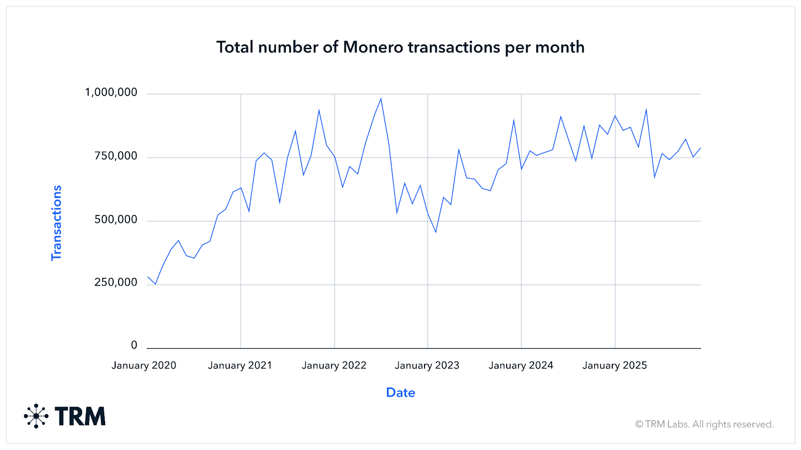 TRM said Monero transaction activity in 2024 and 2025 stayed above pre-2022 levels, a sign that demand held up even as access through major exchanges narrowed.